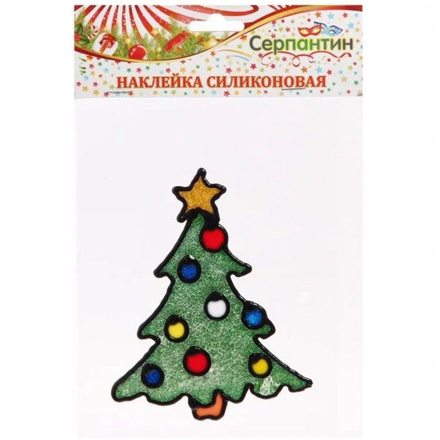 Наклейка на стекло 15*18 см, «Елочка с шариками»