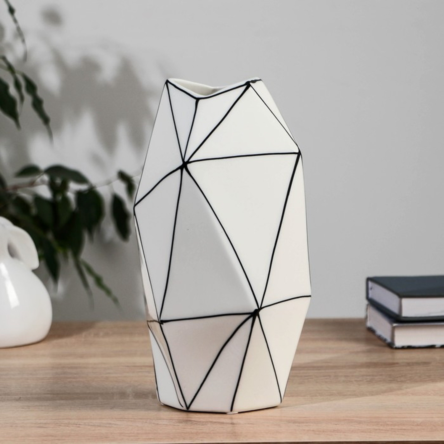 Ваза керамика настольная "Пикассо" (ручная роспись) треугольники, h=25 см, чёрно-белый 10073216