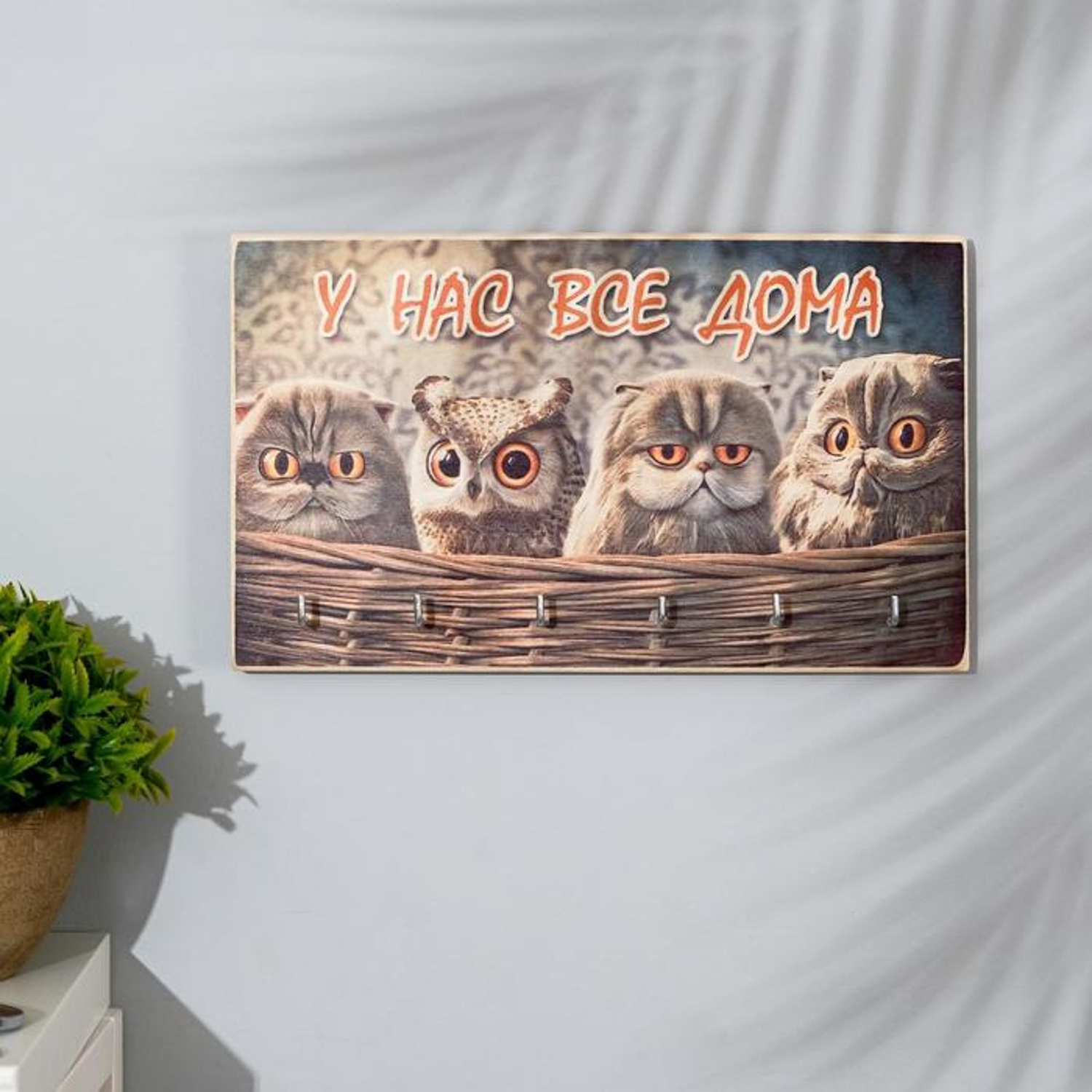 Ключница деревянная "У нас все дома" 6 крючков 25х15 см 7005921