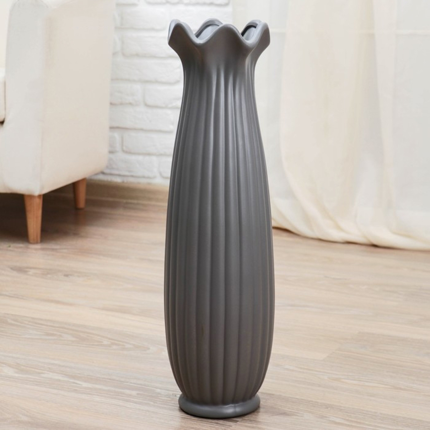 Ваза керамика напольная "Геометрия" бутон, 16х60 см, серый 4635456