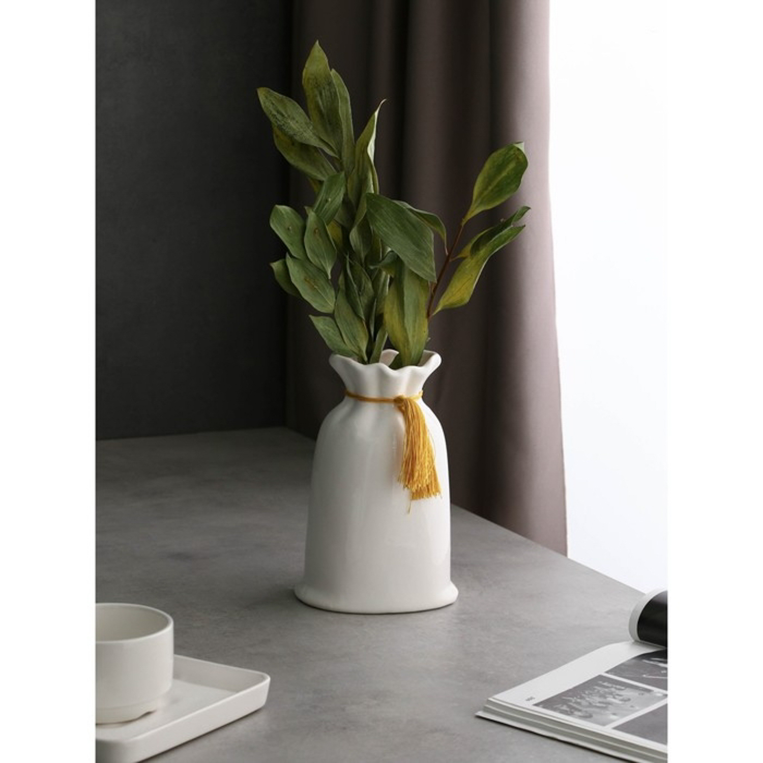 Ваза настольная «Мешочек», h=21 см, цвет белый, керамика, 1 сорт, Иран