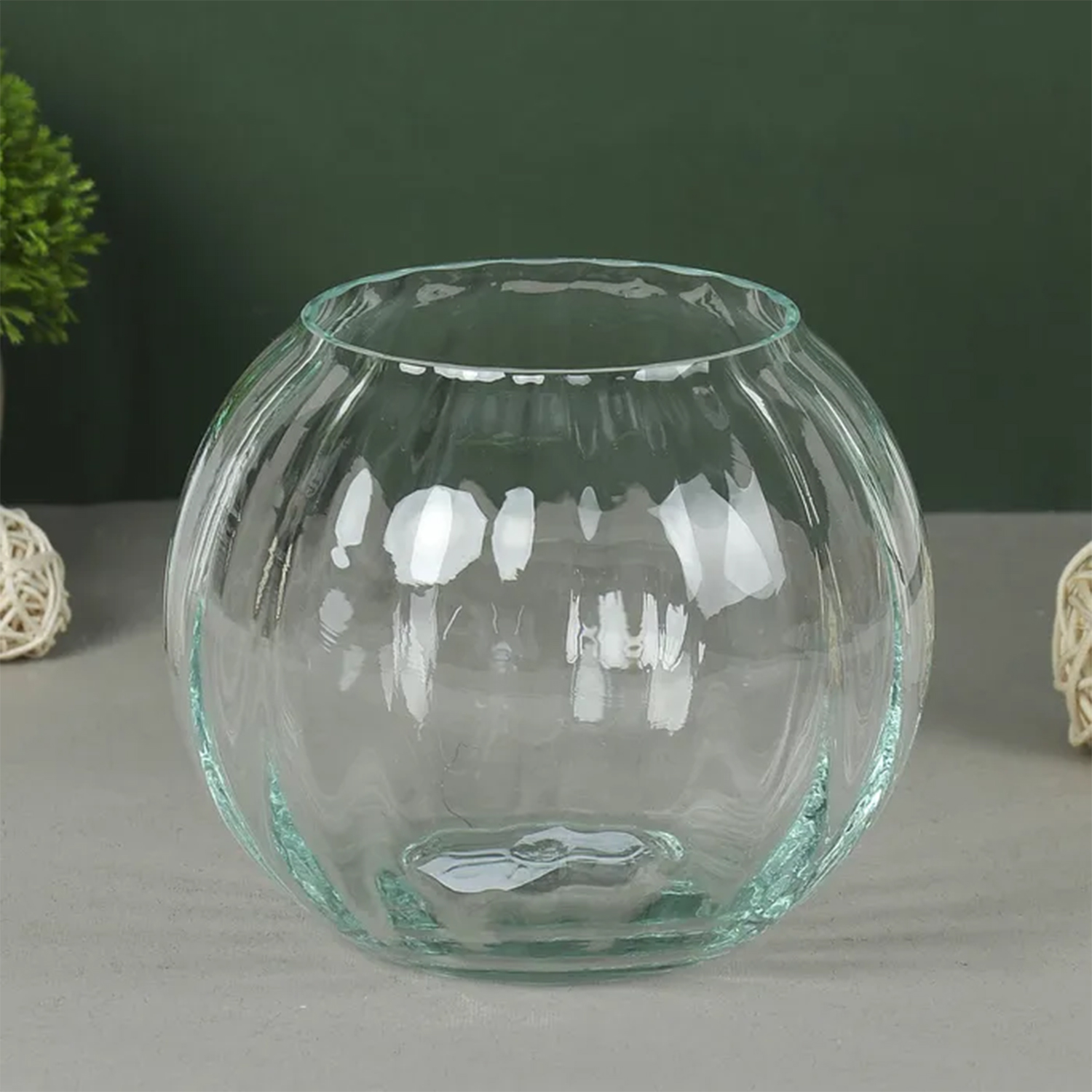 Ваза "Шар" риф. (диам.горл 10см) 18х16см из прозрачного стекла (без декора) 1346372
