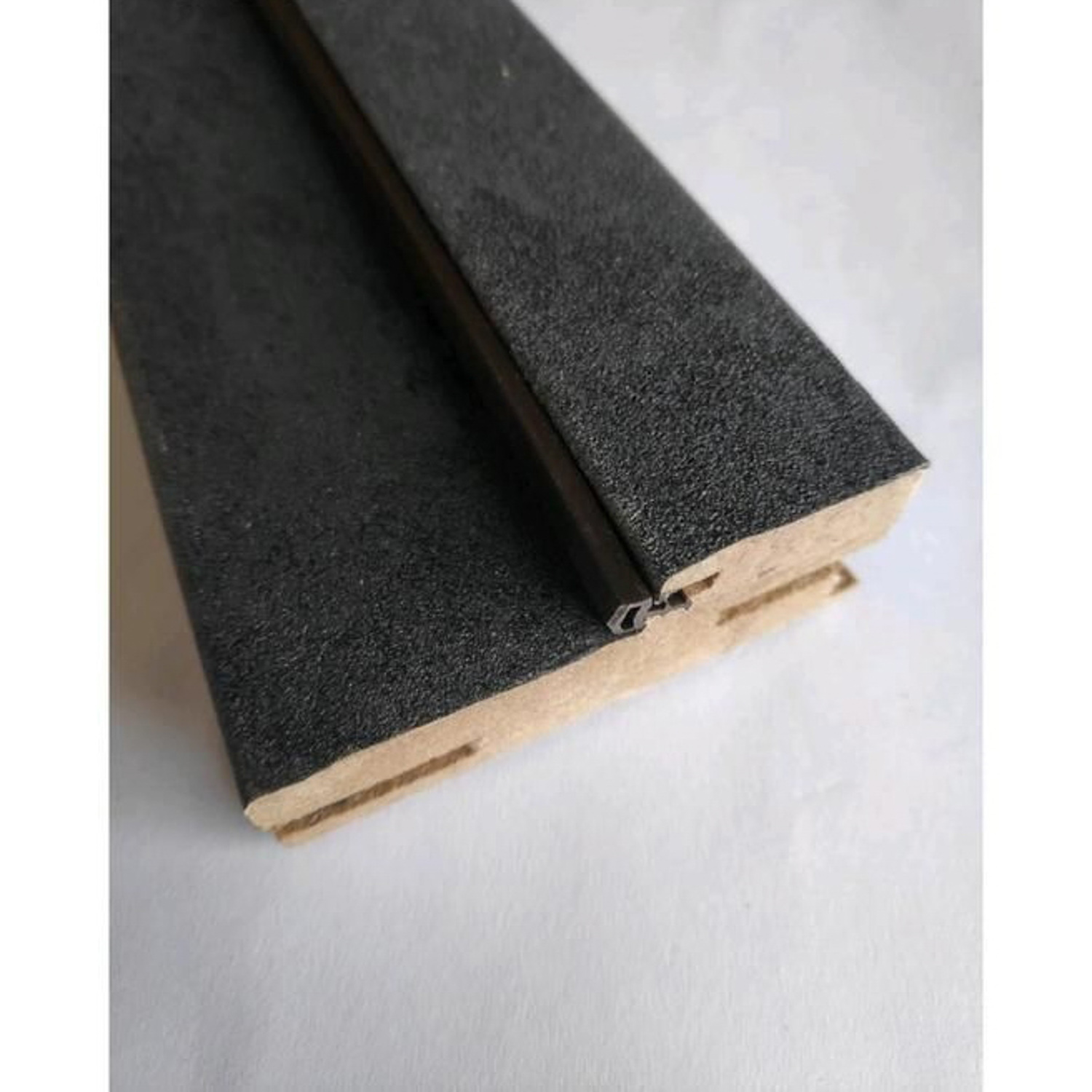 Дверная коробка — часть дверного блока, представляет собой рамочную конструкцию, закрепляемую на стенках дверного проема. Отличие телескопической коробки от стандартной состоит в том, что она имеет специальные пазы, не требующие дополнительных креплений наличника. Чтобы улучшить звукоизолирующие свойства, в дверную коробку установлен уплотнитель. Изготовлена из плит МДФ, ширина 80мм, декорирована ПВХ пленкой (размер 26*80*2050мм).