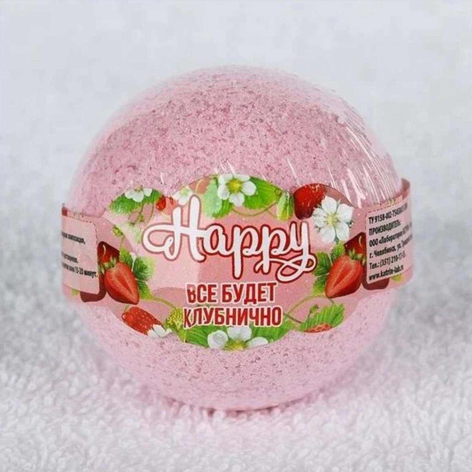 яяяСоль д/ванн Бурлящий шар Happy Все будет клубнично 130г п/п