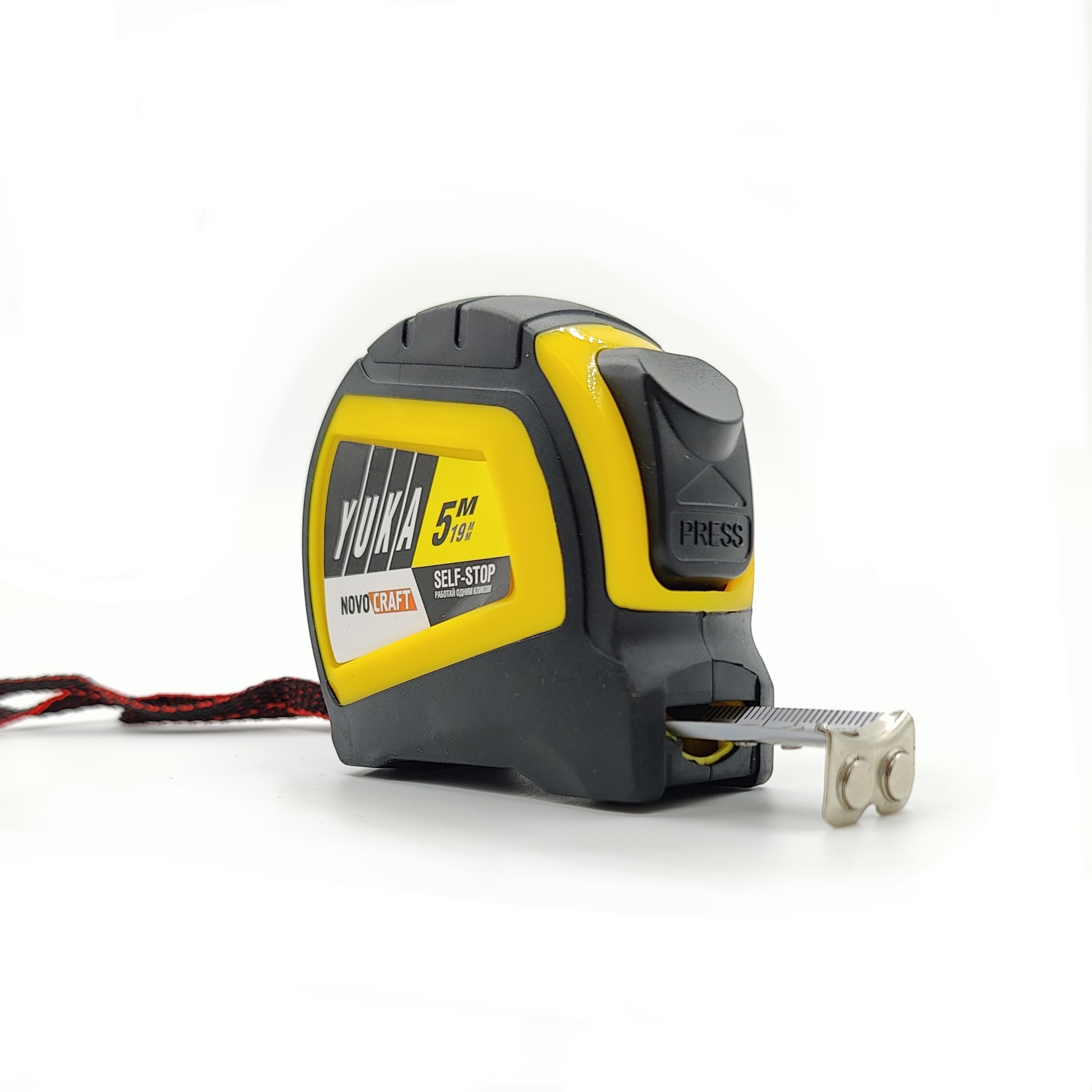 Рулетка  5м х19мм резино-пластик корпус стальн.лента автостоп магнит артYK005190M Novocraft*1/12/120