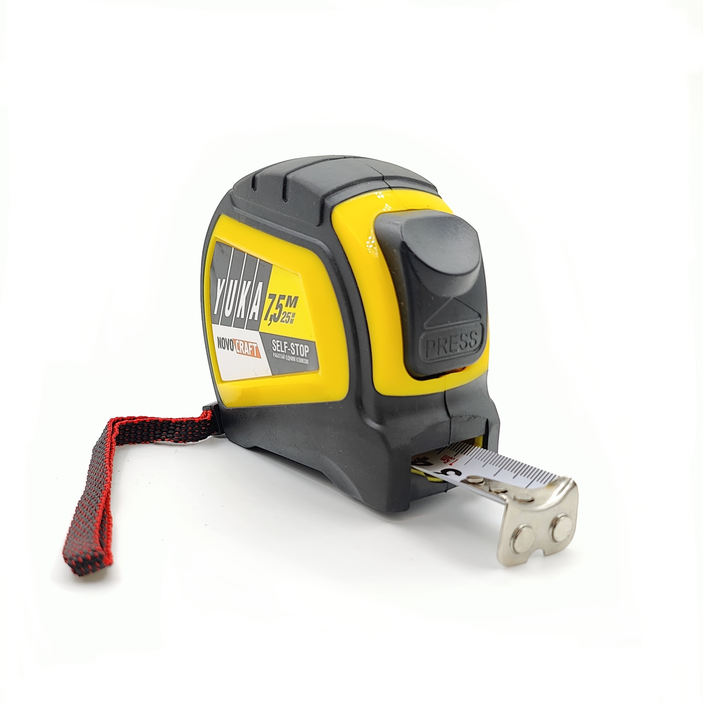 Рулетка 7,5м х25мм резино-пластик корпус стальн лента автостоп магнит артYK075250M Novocraft*1/6/60