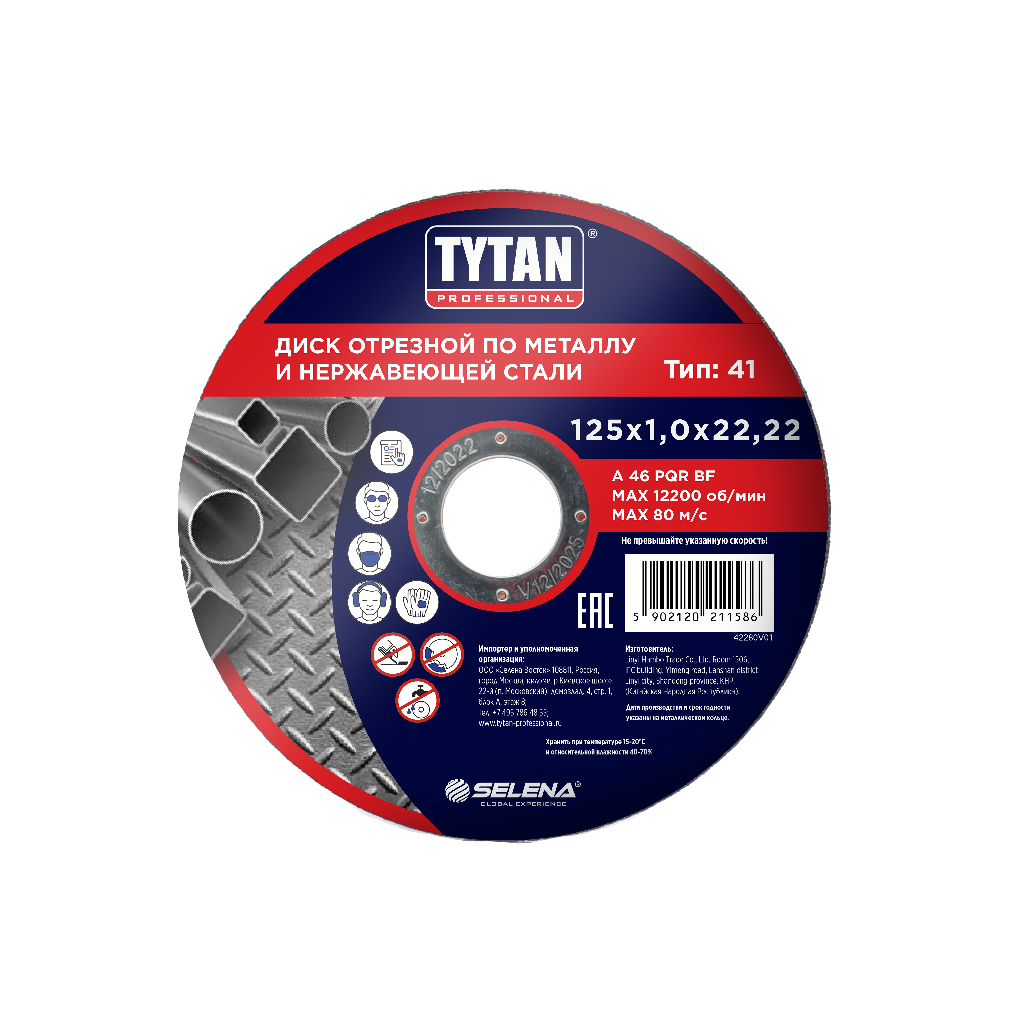 Круг отрезной 125*1,0*22.22 по металлу и нержавеющей стали арт.11586 TYTAN *10/50/400