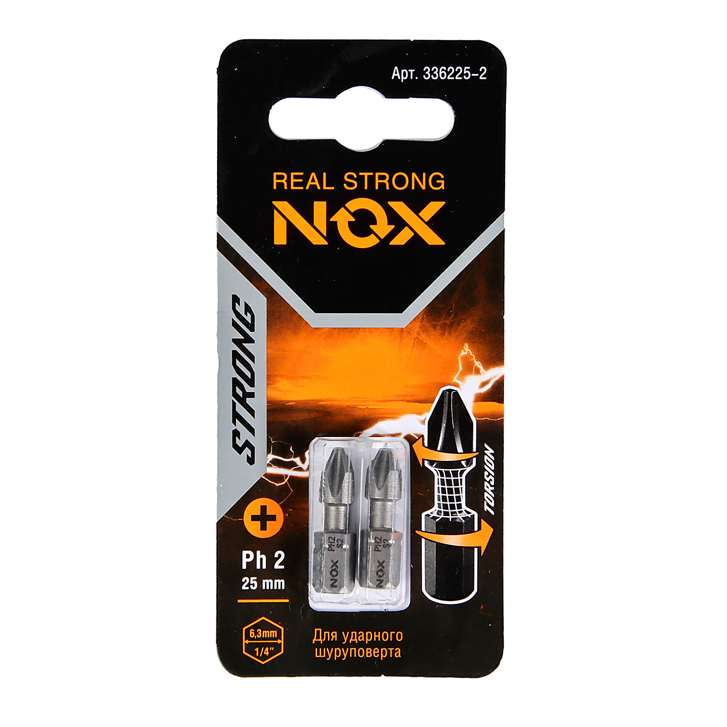 Бита крестовая PH2х 25мм (2шт) торсионная S2 хвостовик1/4"С STRONG арт.336225-2 NOX *10/50/100