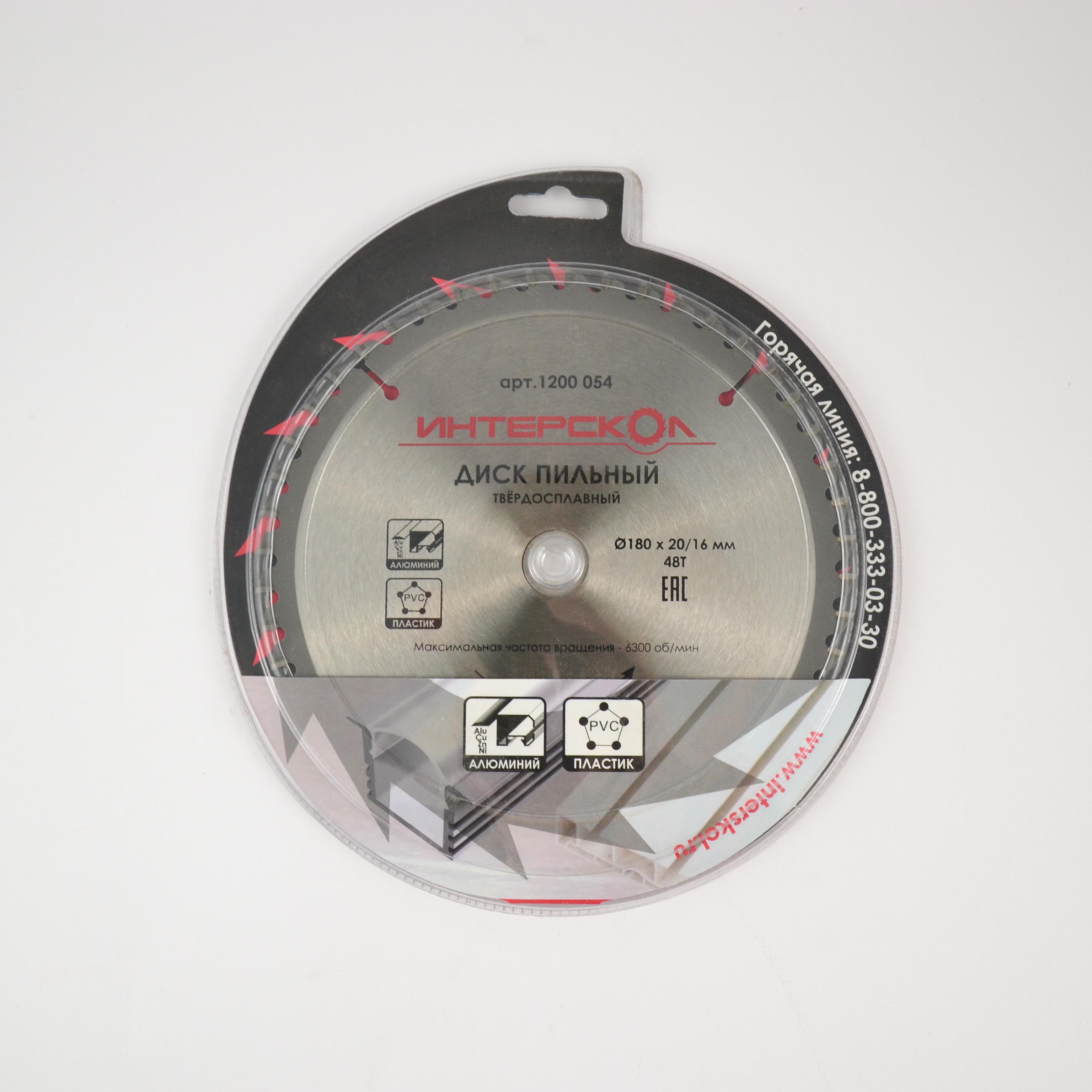 яяяДиск д/циркул.пилы 180мм 20/16-48Тд/цвет.мет, пластика (Интерскол) *1/10