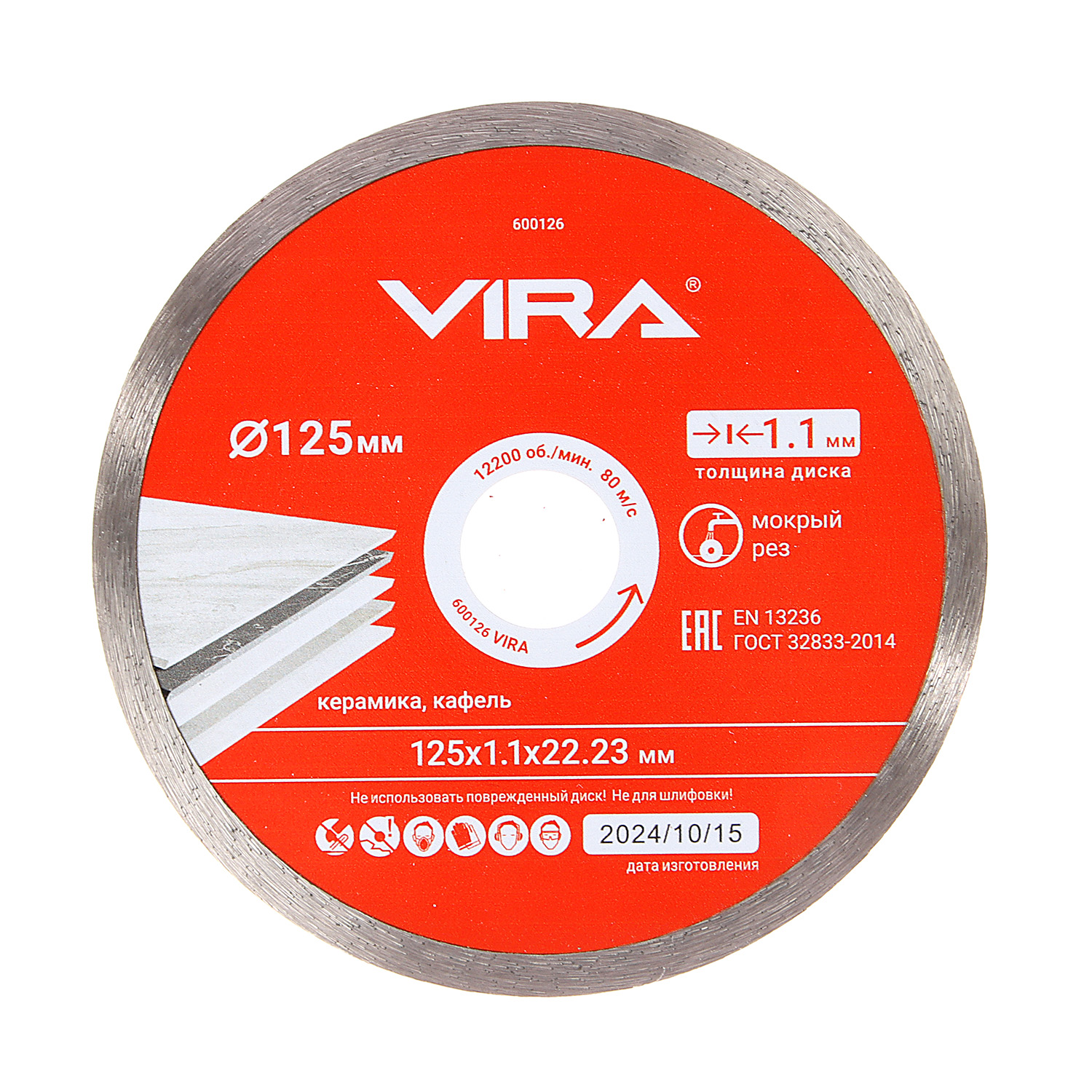 Диск алмазный по керамике сплошной ультратонкий 125 мм VIRA