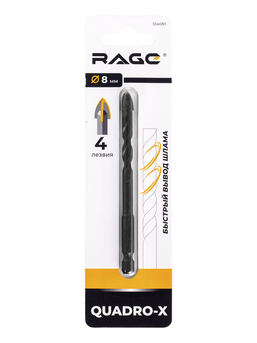 Сверло по стеклу/керамике 8,0мм (1шт) Quadro-X спиральное HEX 4 грани арт.554083 RAGE *1/10
