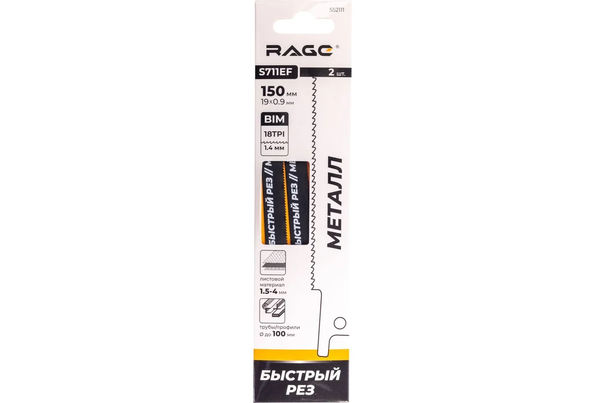 Полотно д/сабельной пилы МЕТАЛЛ 2шт 150/1,4мм прямой рез S711EF арт.552111 RAGE VIRA *10/100