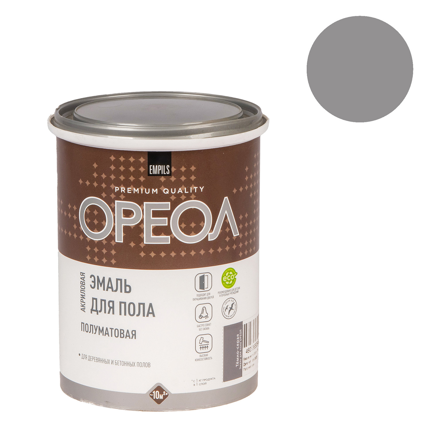 Эмаль акриловая для пола темно-серая полуматовая 0,9 кг Ореол *1/6/588