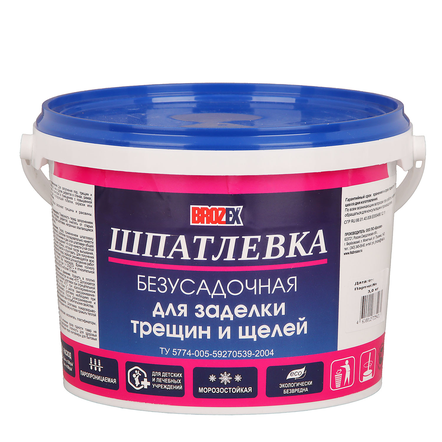 Шпатлевка безусадочная для трещин и щелей BROZEX 3 кг хорошо заполняет трещины, раковины и прочие дефекты в стенах, рамах, полах, плинтусах под последующую побелку, окраску или оклеивание обоями. Образует ровное прочное покрытие.