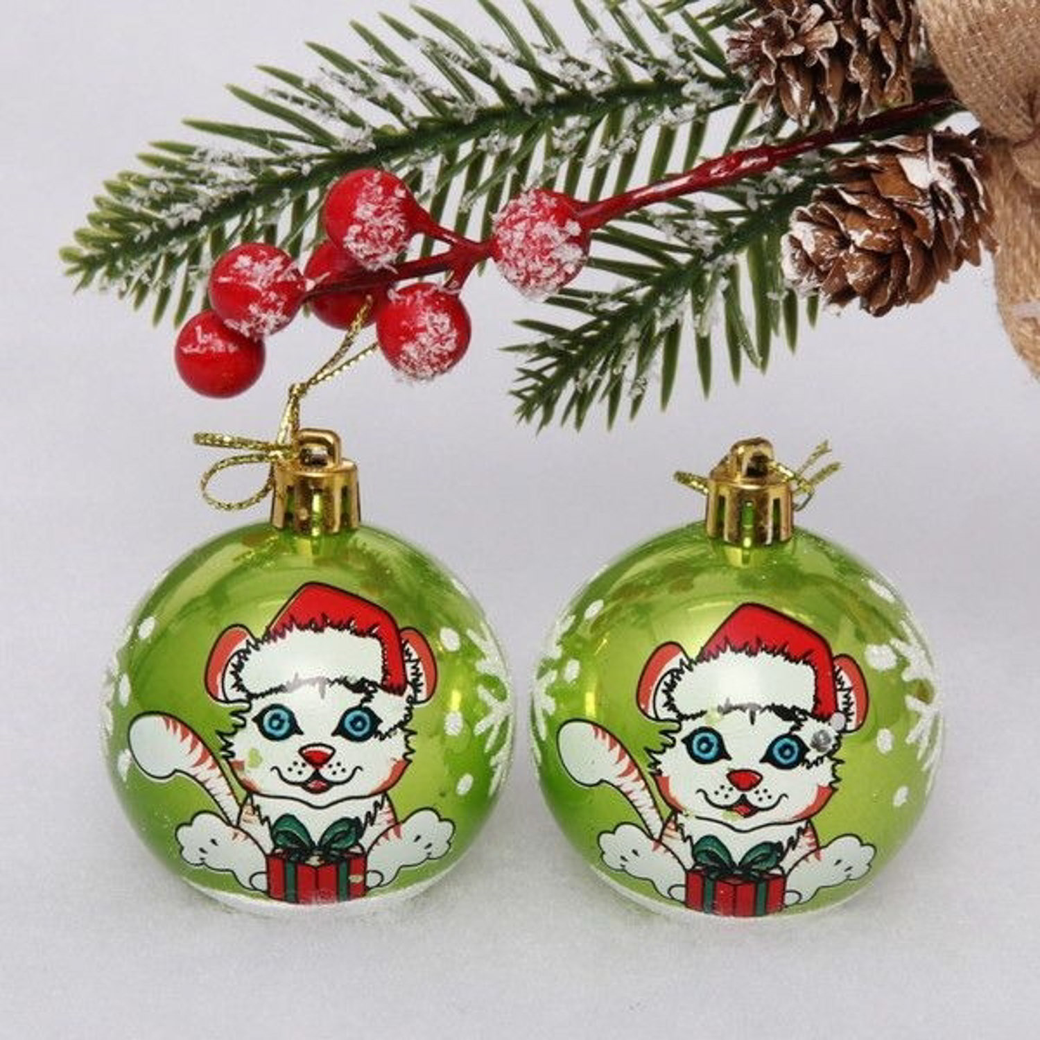 Новогодние шары "Тигрёнок" 6 см (набор 2шт), салатовый