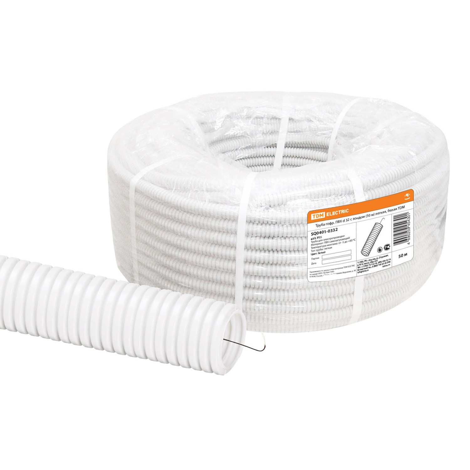 Труба ПВХ гофро с зонд. d32мм(50м) легкая, белая TDM SQ0401-0332 *1