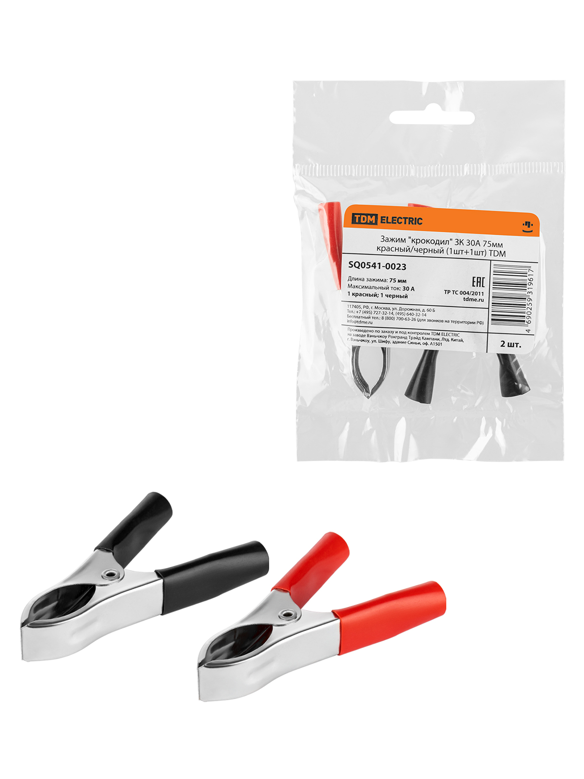 Зажим "крокодил" ЗК 30А 75мм красн/черн (2шт) TDM SQ0541-0023  *1/10/