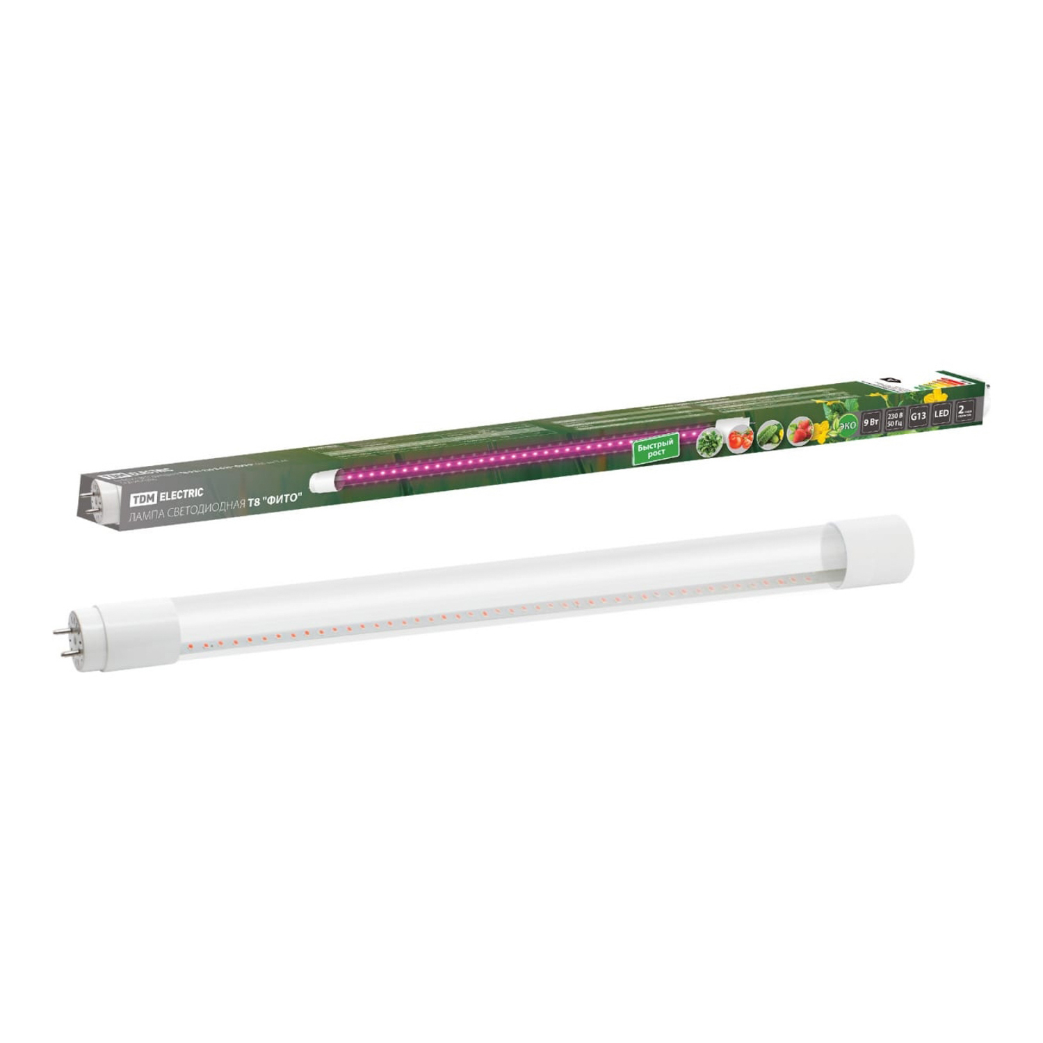 яяяФитолампа светодиодная TDM "ФИТО", T8, G13, 9 Вт, 600 мм, 230 В, мультиспектральная 4267276