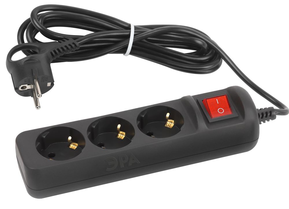 Удлинитель 3 розетки 3м с/з выкл. ПВС 3*0,75мм2 10А мощ. нагр 2200Вт ЧЕРНЫЙ ЭРА UX-3es-3m-B *1/5/20