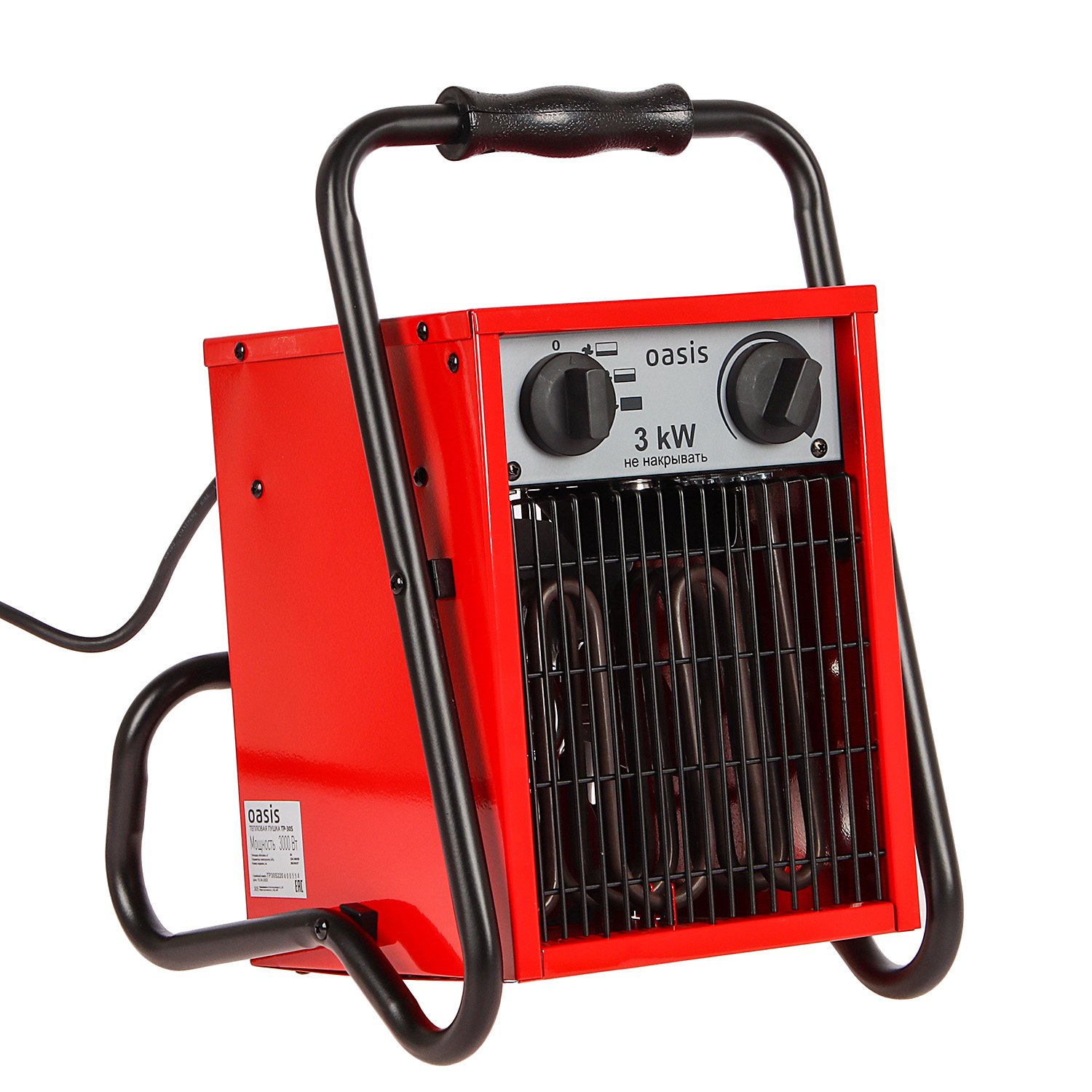 Пушка тепловая электрическая 3кВт 300м3/ч S-30м2 ТЭН 220В TP-30S (U) ОАЗИС *1