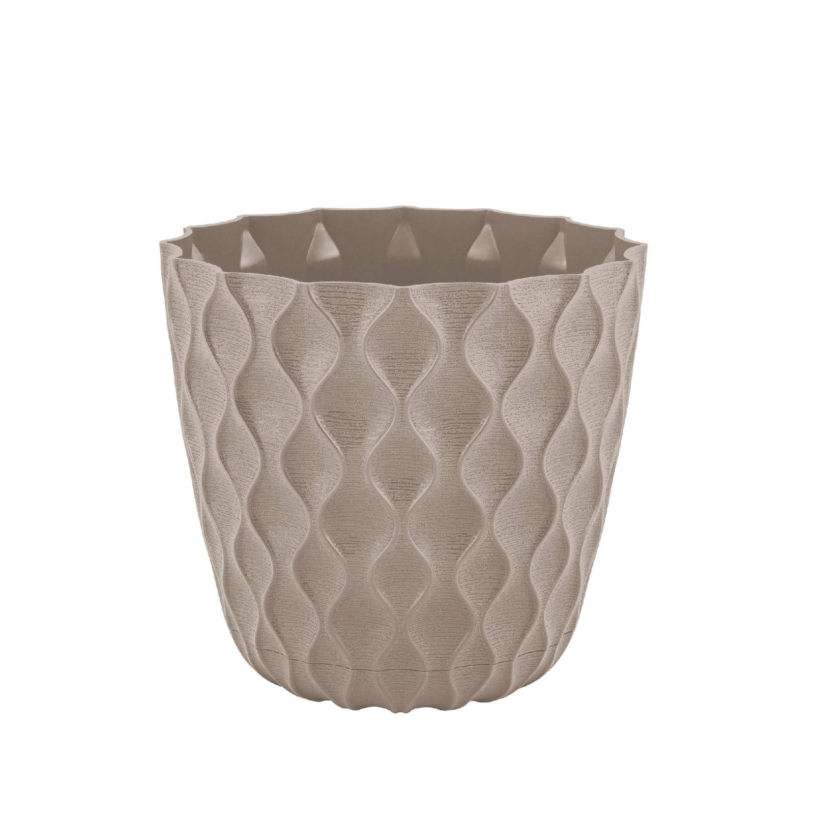 Кашпо пластм. "Wave" 1,4л d верха 145мм h132мм с поддоном Французский платан IG650110105 *1/10