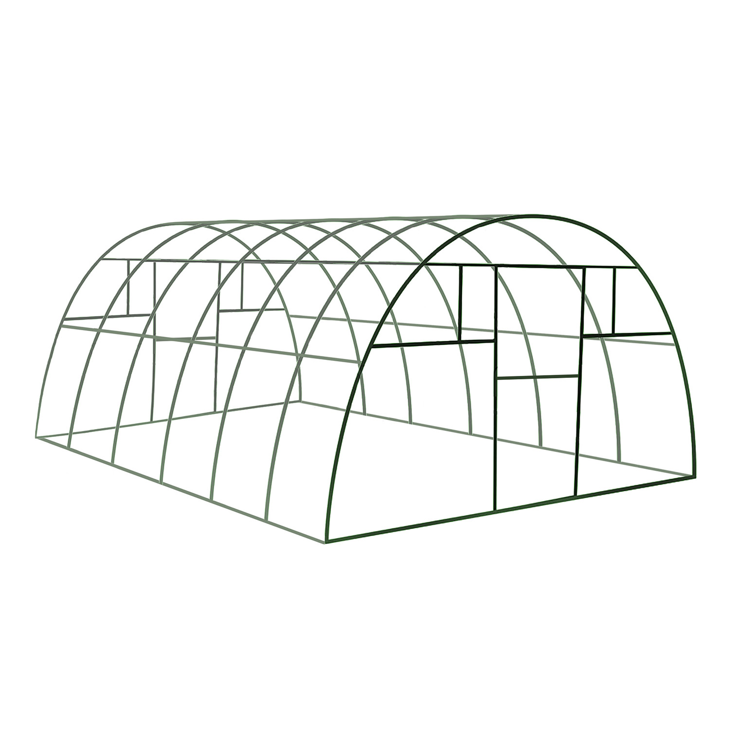 Каркасы легко трансформируются, что позволяет изменить размеры полезной площади. Конструкцию можно применять при строительстве сборно-разборных сезонных теплиц и в качестве капитального сооружения. В каркасе предусмотрены двери и форточки, расположенные с обеих торцевых сторон.