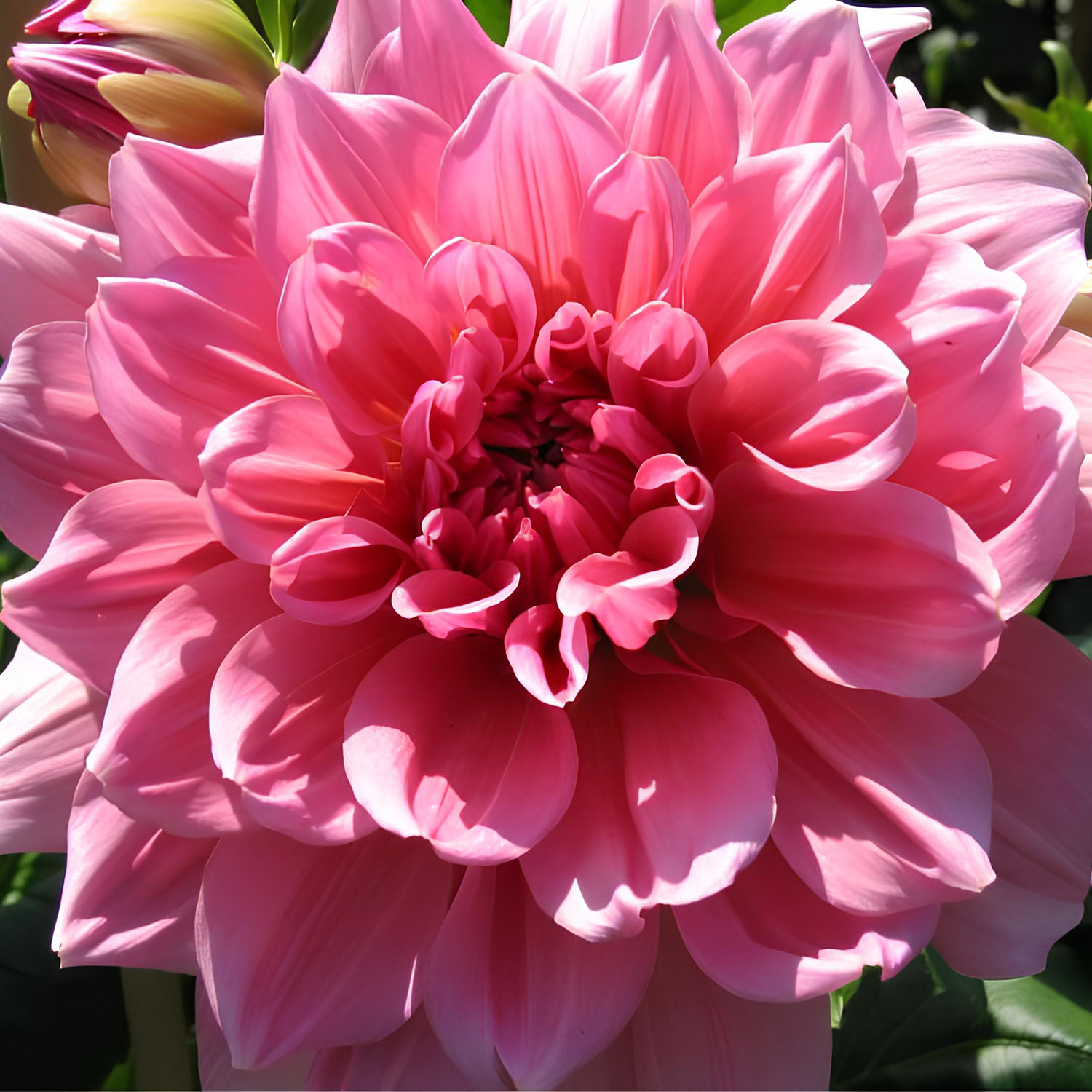 Георгина декоративная - это самый представительный и многочисленный класс георгин. Полностью махровый цветок, диаметром от 10 до 25 см, имеет плоские лепестки (язычковые цветки), слегка закрученные и отогнутые к стеблю, что делает его необыкновенно пышным и эффектным.
