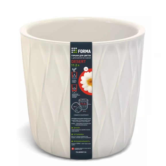 Кашпо пластм. "Desert" 11.2л d верха 265мм h258мм со вставкой Молочный 86707 *1/3
