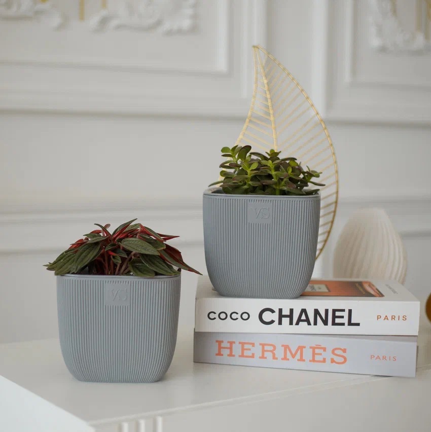 Кашпо пластм. "Фабио" 4,7л 190х190мм h190мм со вставкой Серый AMF-4,7-03 ("VipSet") *1/8
