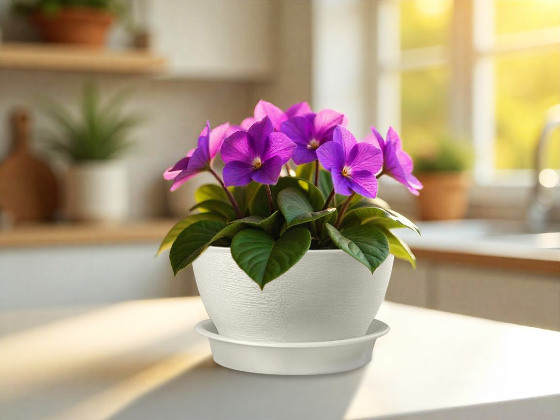 Кашпо пластм. "Фиалочка" 0,8л d верха 140мм h80мм с поддоном Белый КФ 0,8Б "ПластоС" *1/65