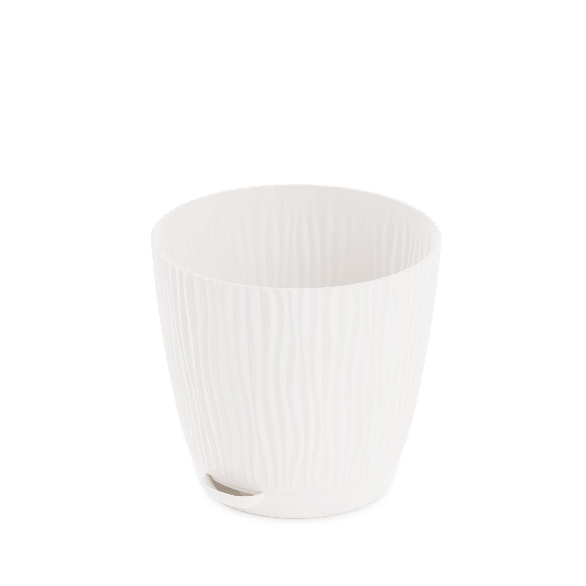Кашпо пластм. "Флис" 0,75л d верха 115мм h110мм с поддоном, прикорн.полив Белый М8426 *1/24