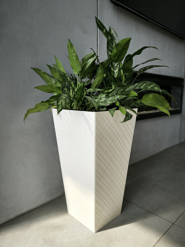 Кашпо пластм. "Manhattan Cube" высокое 34л/вставка19л 300х300мм h564мм Белосн.жасмин IG671410048*1/4