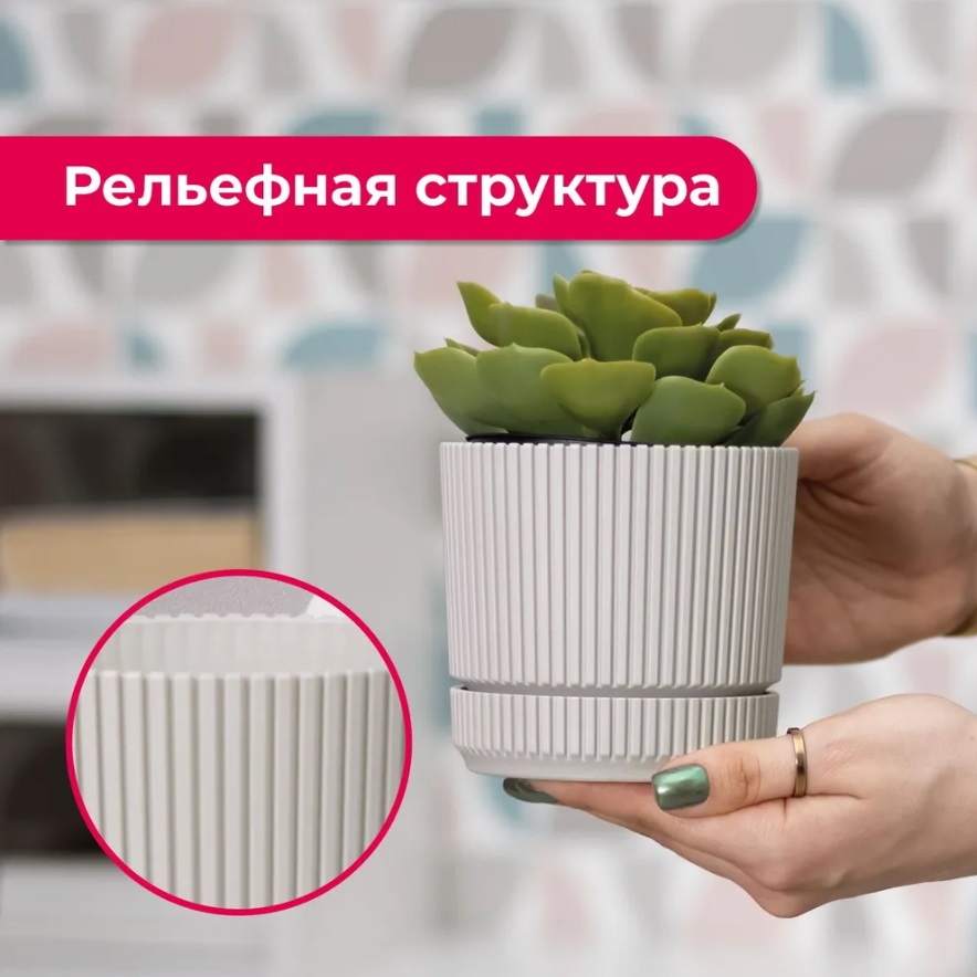 Кашпо пластм. "Стрип" 0,6л d верха 110мм h100мм с поддоном Кремовый М3245 ("М-Пластика") *1/18