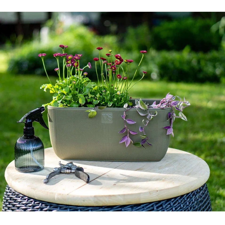 Кашпо пластм. "Фабио" 9,5л 378х190х170мм со вставкой Оливка АМBF-9,5-14 ("VipSet") *1/4