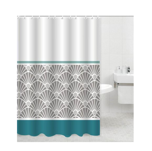 Штора для ванной "Aquadomer" п/эстер 180*180см "Узор зеленый" с кольцами XT-038 *1/25