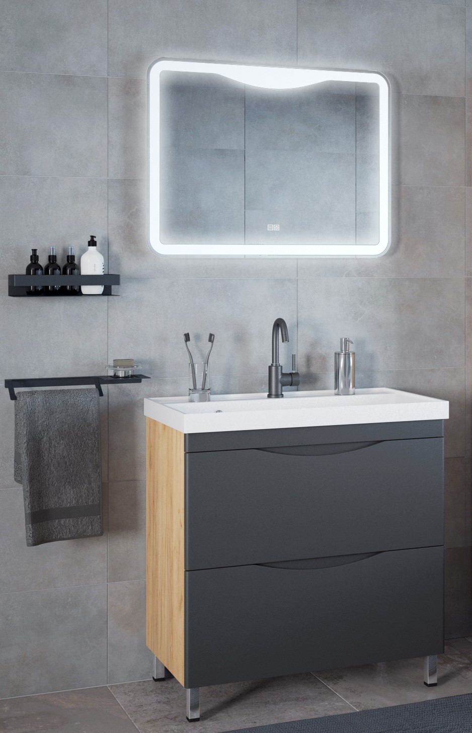 Тумба /Korall/ "Лиана 60" дуб графит (выписывать раковину COMO 60 (БЛ322) *1/6