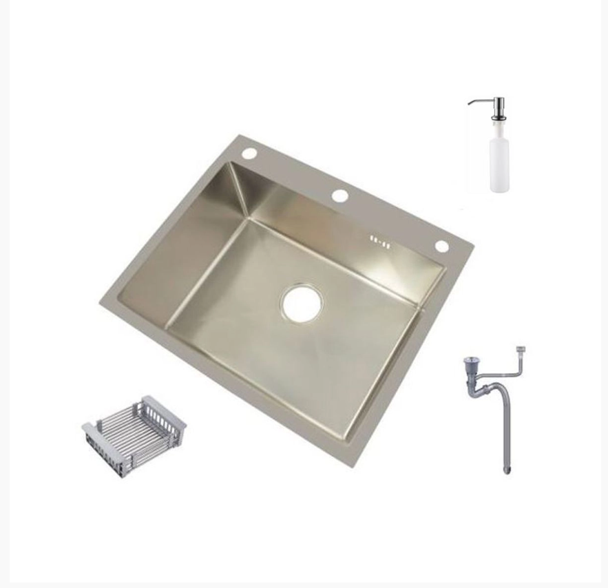 Мойка нерж. врезная 600х500х220мм DIKALAN сатин, с сифоном, отв. под смеситель, дозатор *1/3