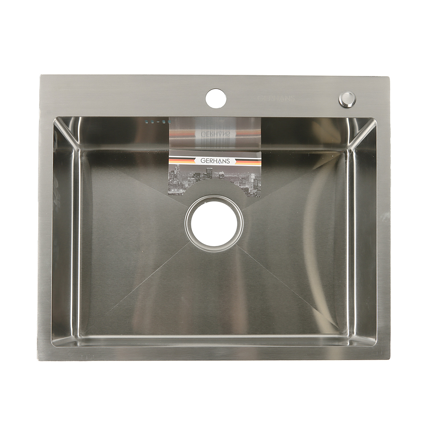 Мойка нерж. врезная 600х500х220мм толщ.1мм, с сифоном, отв. под смеситель, GERHANS *1/5