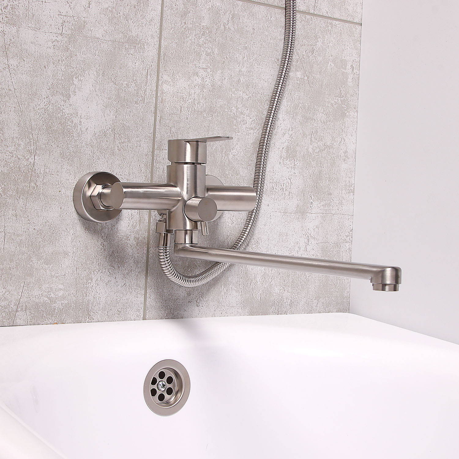 Смеситель универсальный "Potato" плоский излив с переключ. душа, нерж. сталь P22303S  *1/10
