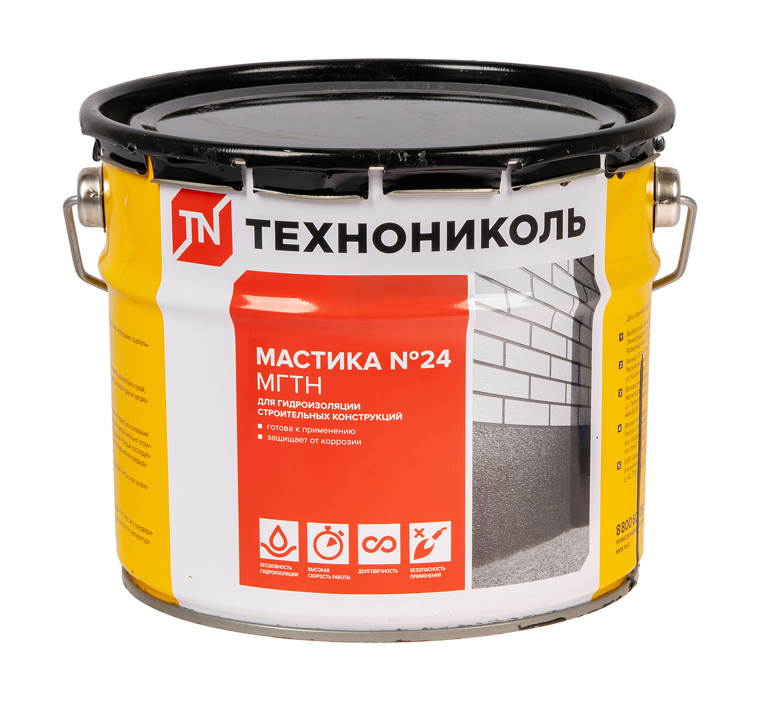 Гидроизоляция бетонных, железобетонных, деревянных и других строительных конструкций, заглубленных в землю и контактирующих с влажной средой. Мастика № 24 (МГТН) не применяется на подвижных основаниях с высокими деформациями.
