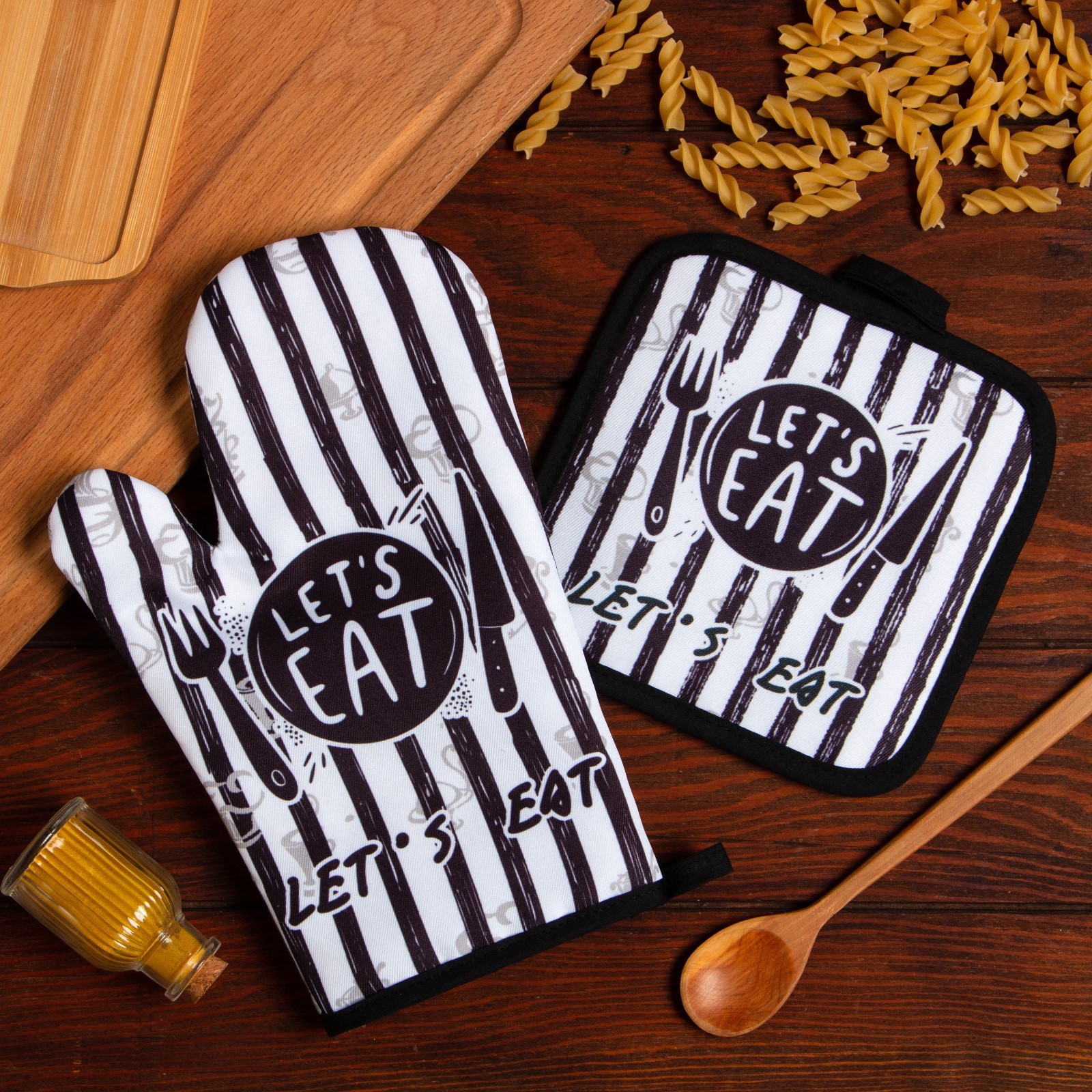 Набор прихваток Eat варежка-прихватка 25х16см, прихватка 17х17см, 100% полиэстер Доляна *1