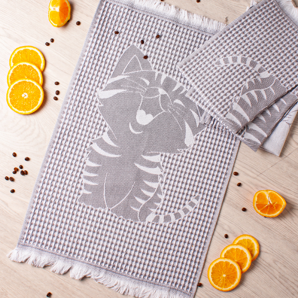 Полотенце вафельное жаккардовое 40*60см Котик серый Casa Conforte *4