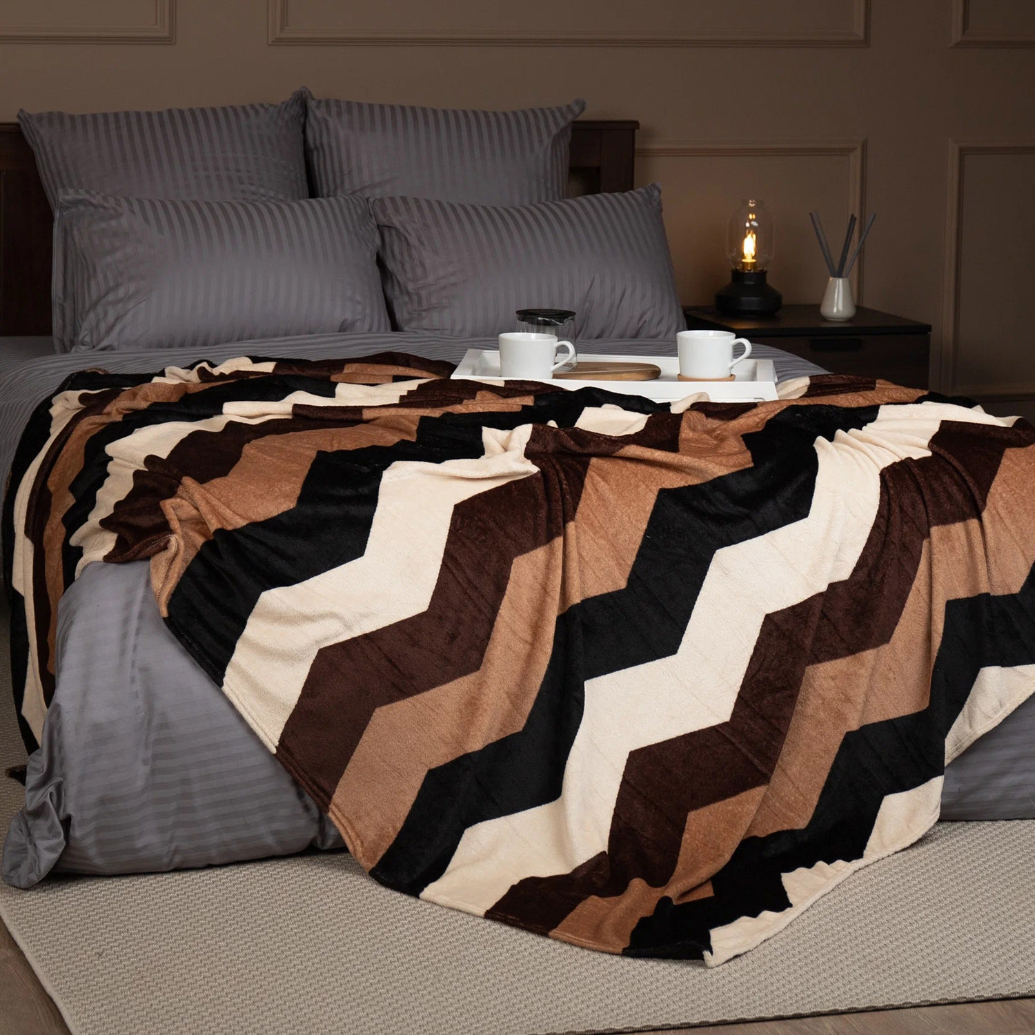 Плед 140*200см фланель Зигзаги бежевый TF FN F98 b1420 Absolute *1
