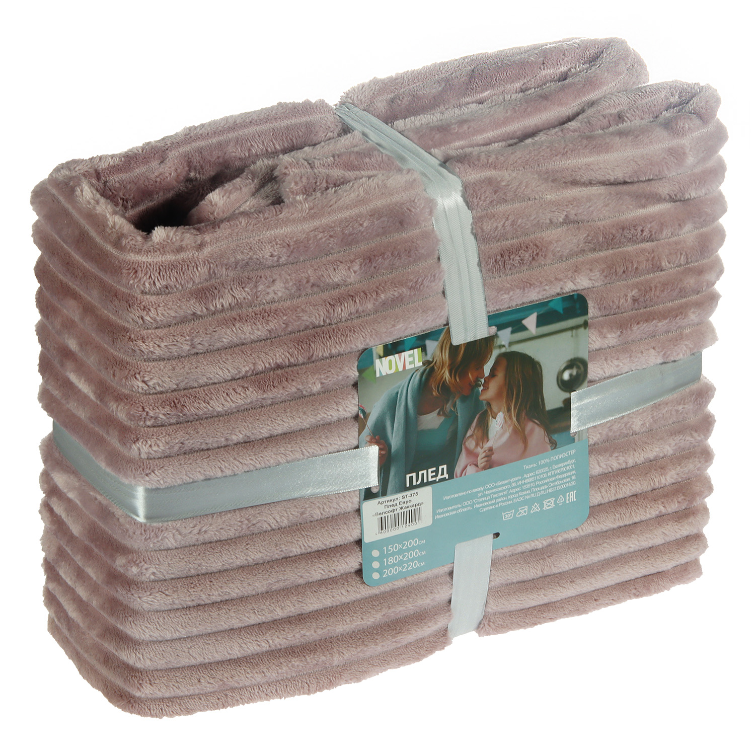 Плед 200*220см микрофибра жаккард полоска сиреневый арт.375 NOVEL *1/8