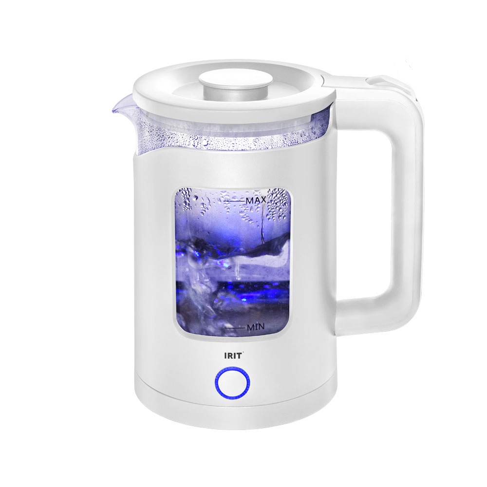Чайник электрический стекло 1,5л 1500Вт IRIT IR-1918 белый, светодиодная подсветка, шкала *1/12