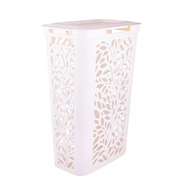 Корзина для белья пластм. 40л "Leaves" 635x275x440мм Молочный 49424 ("Плимербыт") *1/4