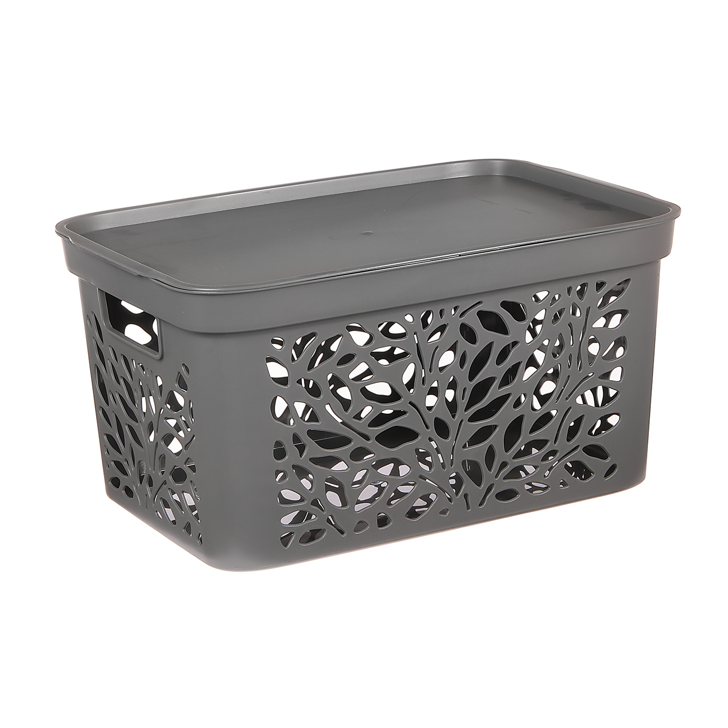 Корзина для хранения пластм. "Leaves" 405х275х207мм с Крышкой 18л Серый арт.83801("Полимербыт")*1/11