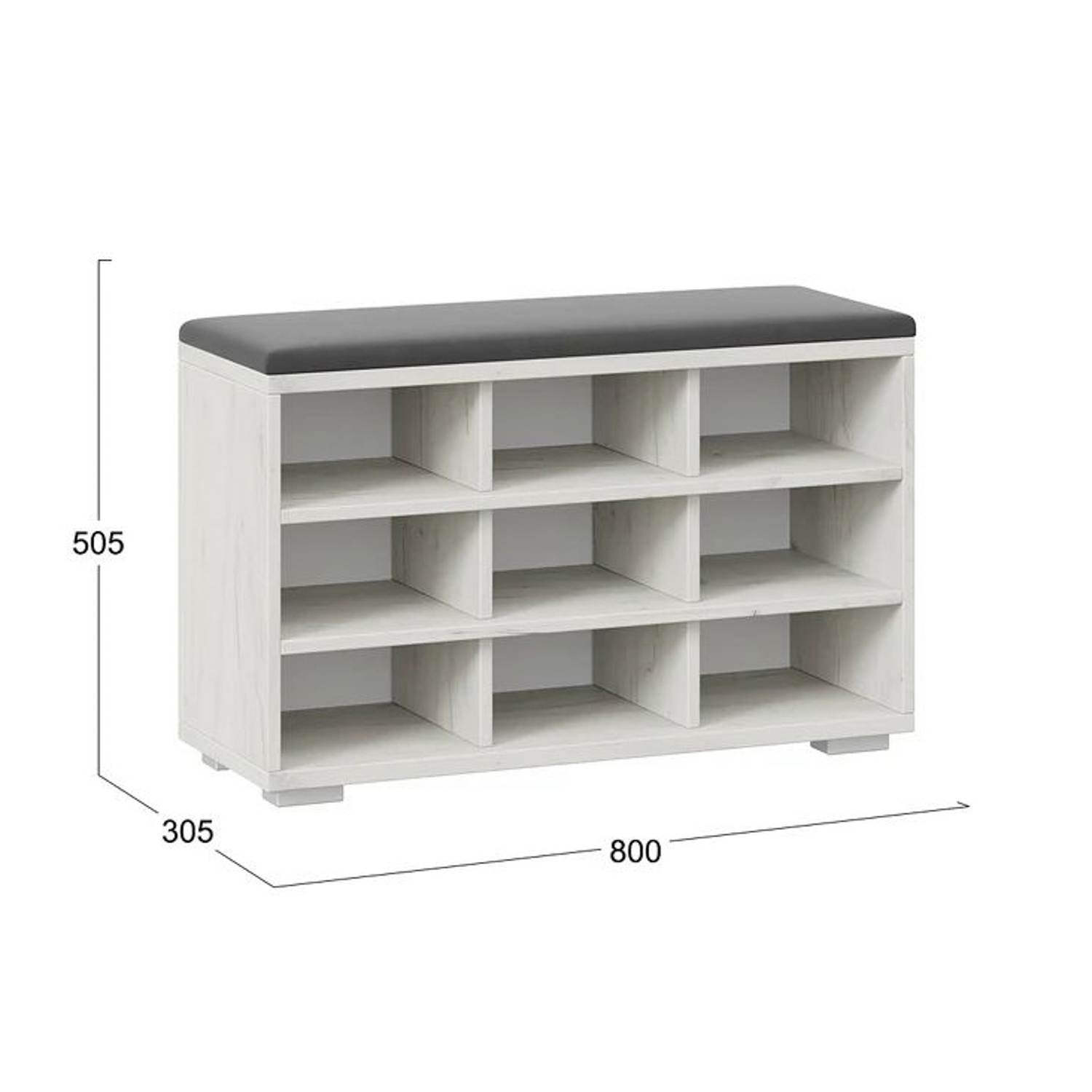 Обувница 800*305*505 Тип10 ДУБ КРАФТ БЕЛЫЙ/ВЕЛЮР ГРАФИТ ТриЯ *1