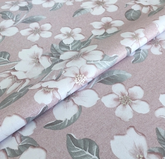 Клеёнка на тканевой основе "Style" "Яблоневый цвет" беж.-роз. фон шир.1,37м GW-21597 "Great Way" *20