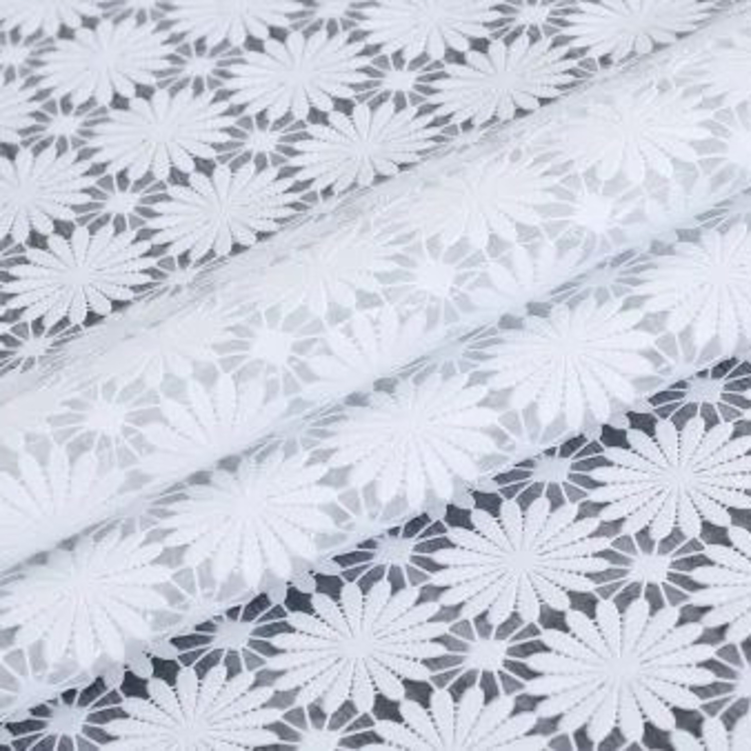 Клеёнка без основы ажурная "Ромашки" белая шир.1,37м GW-21104 "Great Way" *20